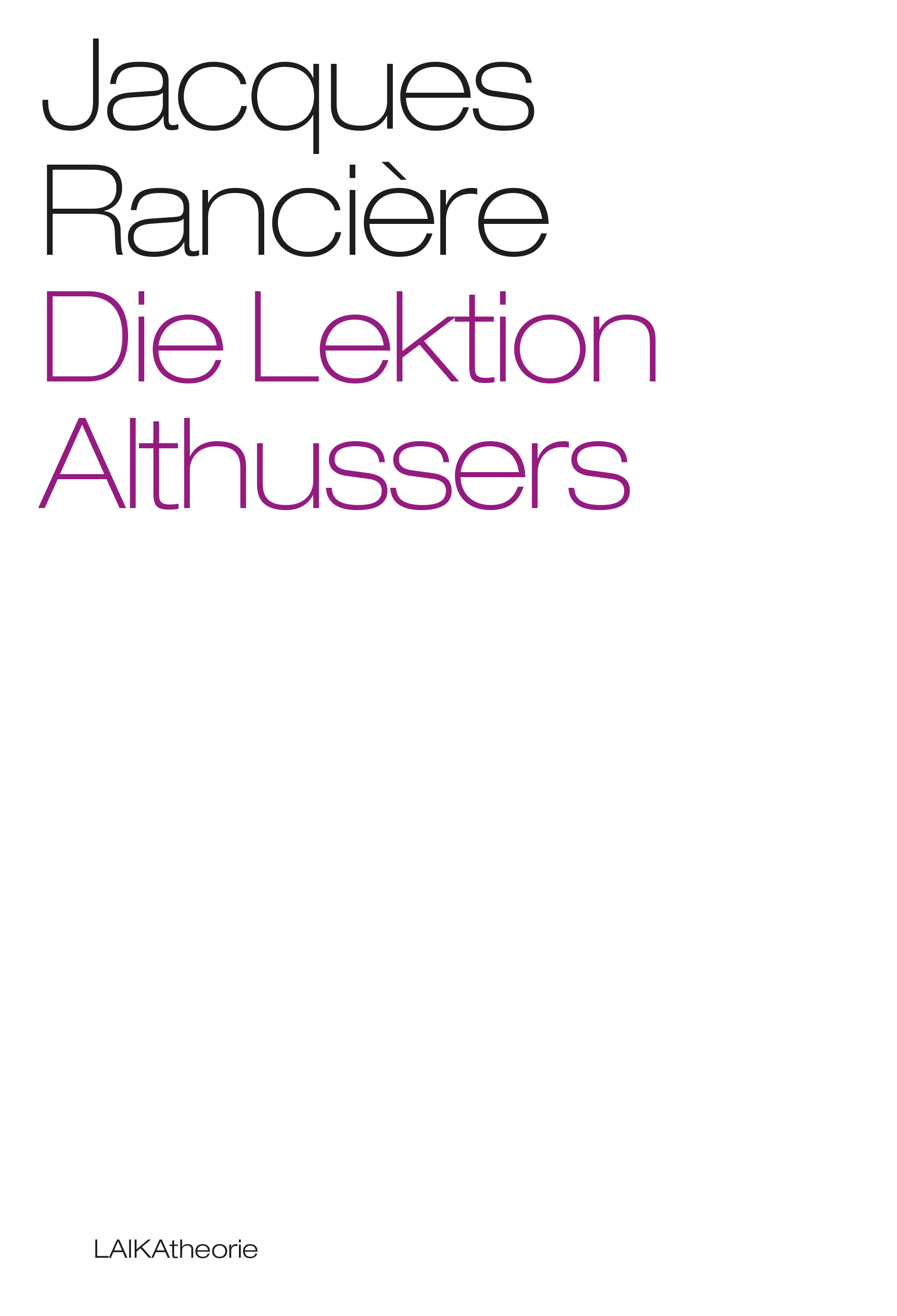 Jacques Rancières erstes Werk, zweifellos bis heute eine seiner wesentlichsten Schriften, erschien 1975 in Frankreich und hat seither nichts von seiner Aktualität eingebüßt. Mit der Verspätung von 37 Jahren erschien es 2011 erstmals in englischer Übersetzung. Nun endlich liegt Die Lektion Althusseres in deutscher Übersetzung vor.